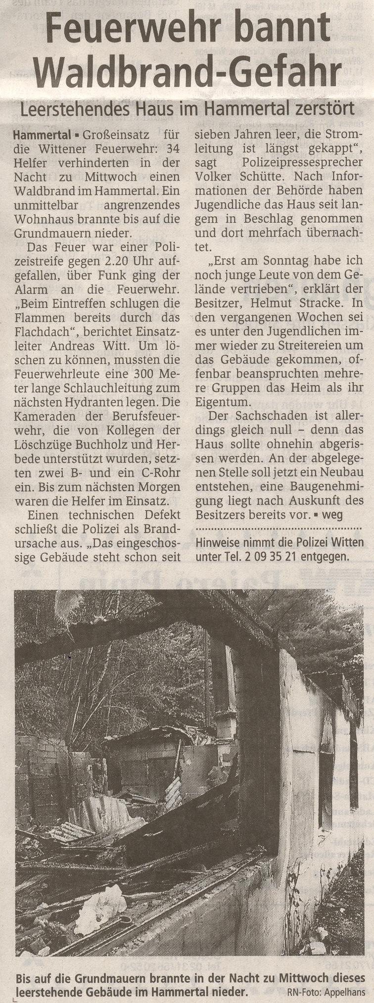Zeitungsbericht Westdeutsche Allgemeine Zeitung vom 23.05.2002